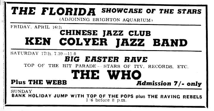 The Who play the “Big Easter Rave” at The Florida Rooms in Brighton