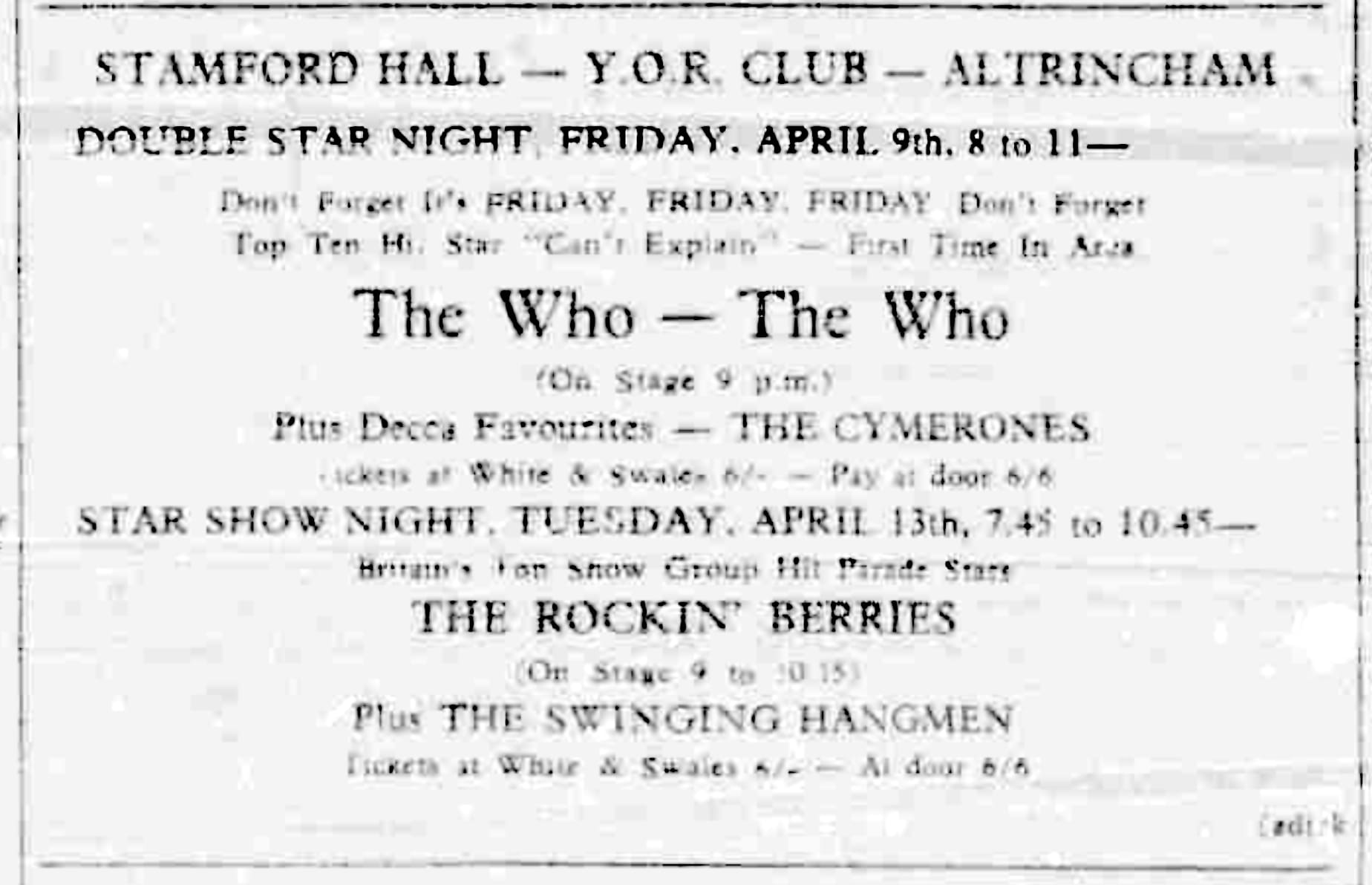 The Who play The Lakeside R&B Scene at the Old Welsh Harp in Hendon, Middlesex