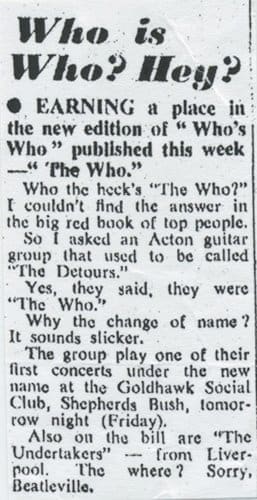 The Who play the Goldhawk Social Club in Shepherd’s Bush opening for The Undertakers