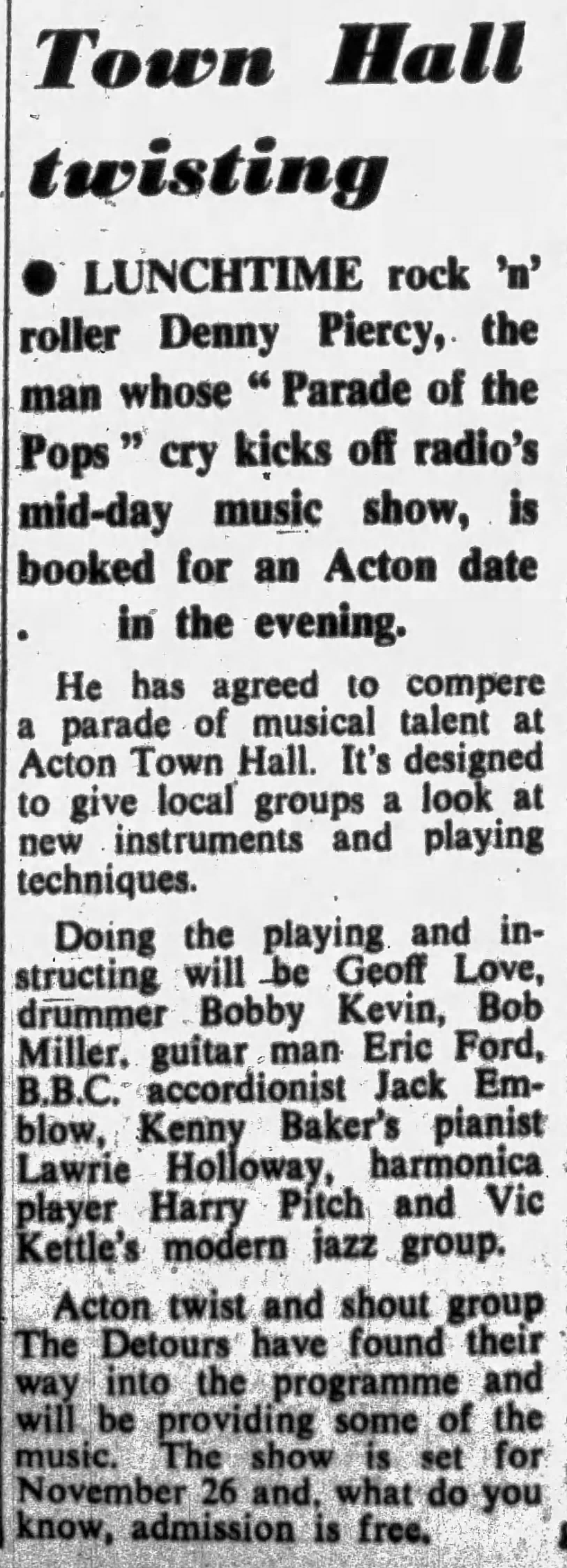 The Detours play at the Town Hall in Acton