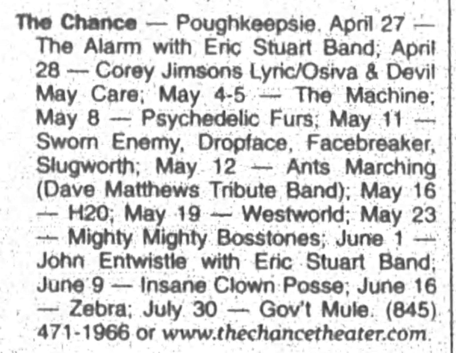 John Entwistle plays The Chance in Poughkeepsie, NY