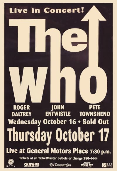 The Who play the General Motors Place in Vancouver, British Columbia, Canada
