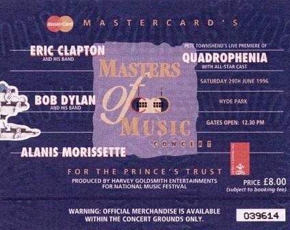 Billed under their separate names, Pete, Roger and John perform the entirety of Quadrophenia live at the Masters of Music festival at Hyde Park on the 29th