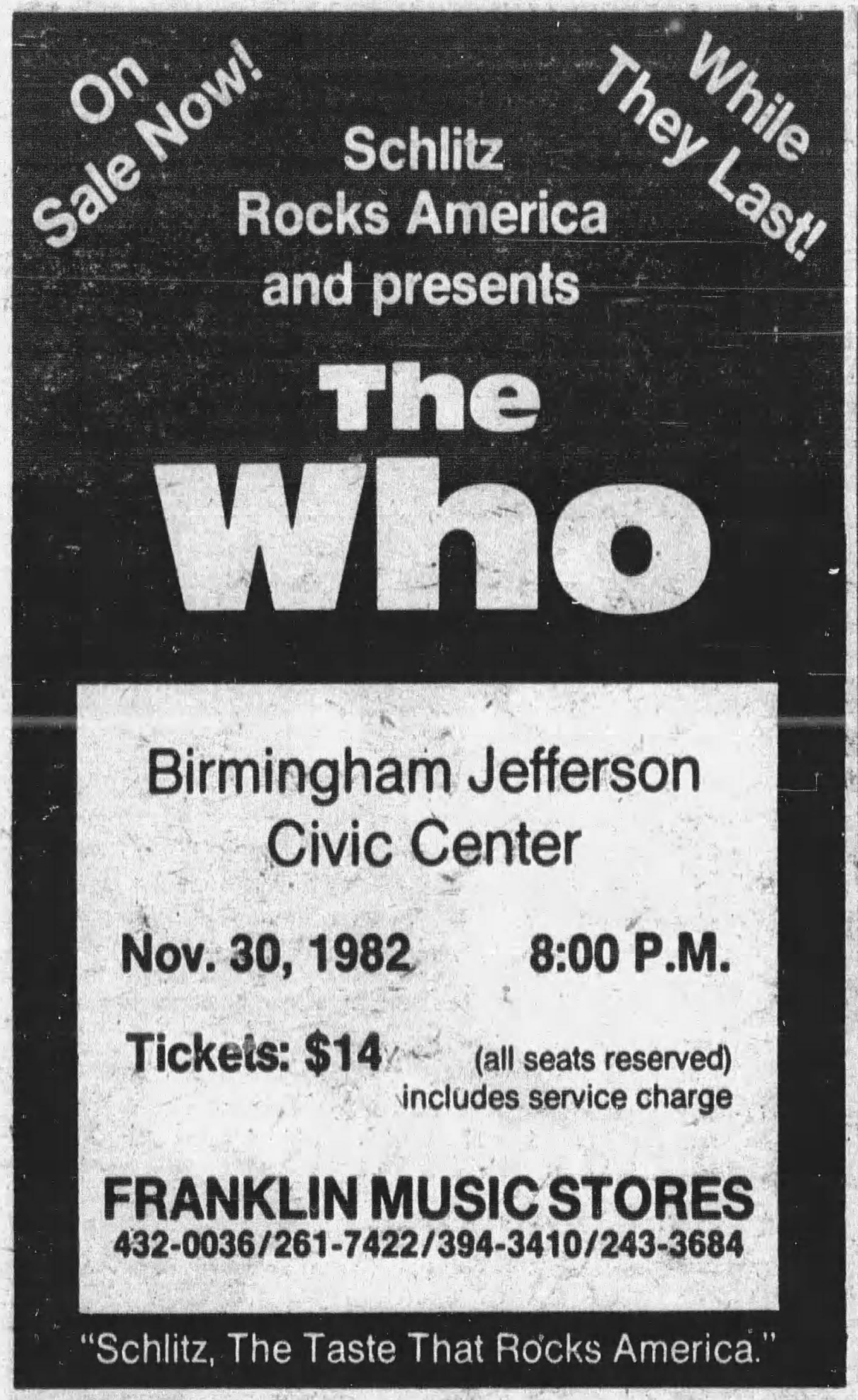 The Who play the Birmingham-Jefferson Civic Center in Birmingham, Alabama