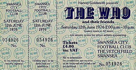 The Who play at the Swansea Football Ground in Swansea, Wales