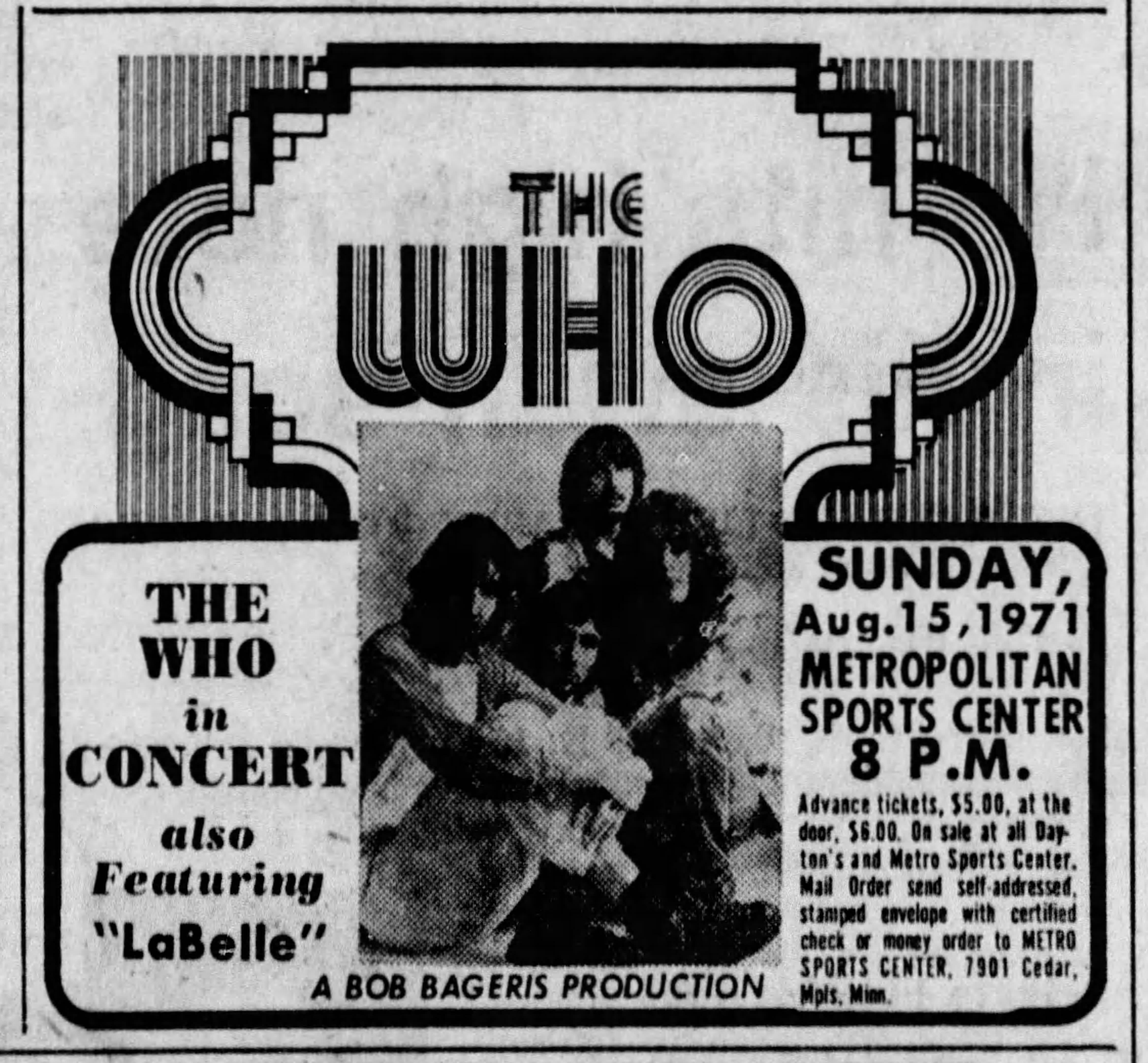 The Who play the Metropolitan Sports Center in Bloomington, Minnesota