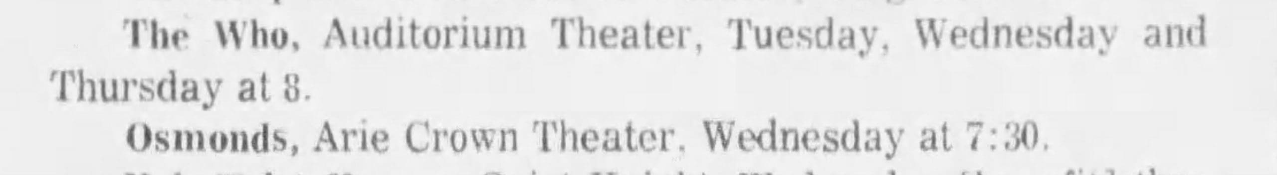 The Who play the Auditorium Theater in Chicago, Illinois