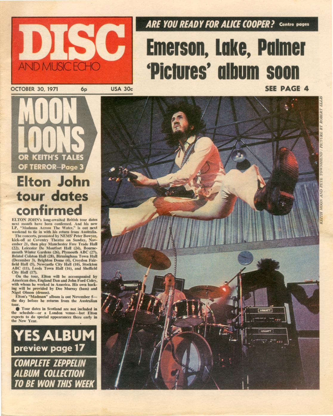 Disc and Music Echo feature a photo of Pete on the cover and an article titled “Loons of Moon”