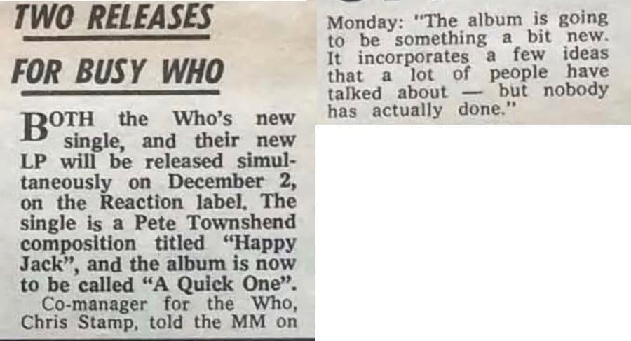 Melody Maker carries a brief article titled “Two Releases For Busy Who”