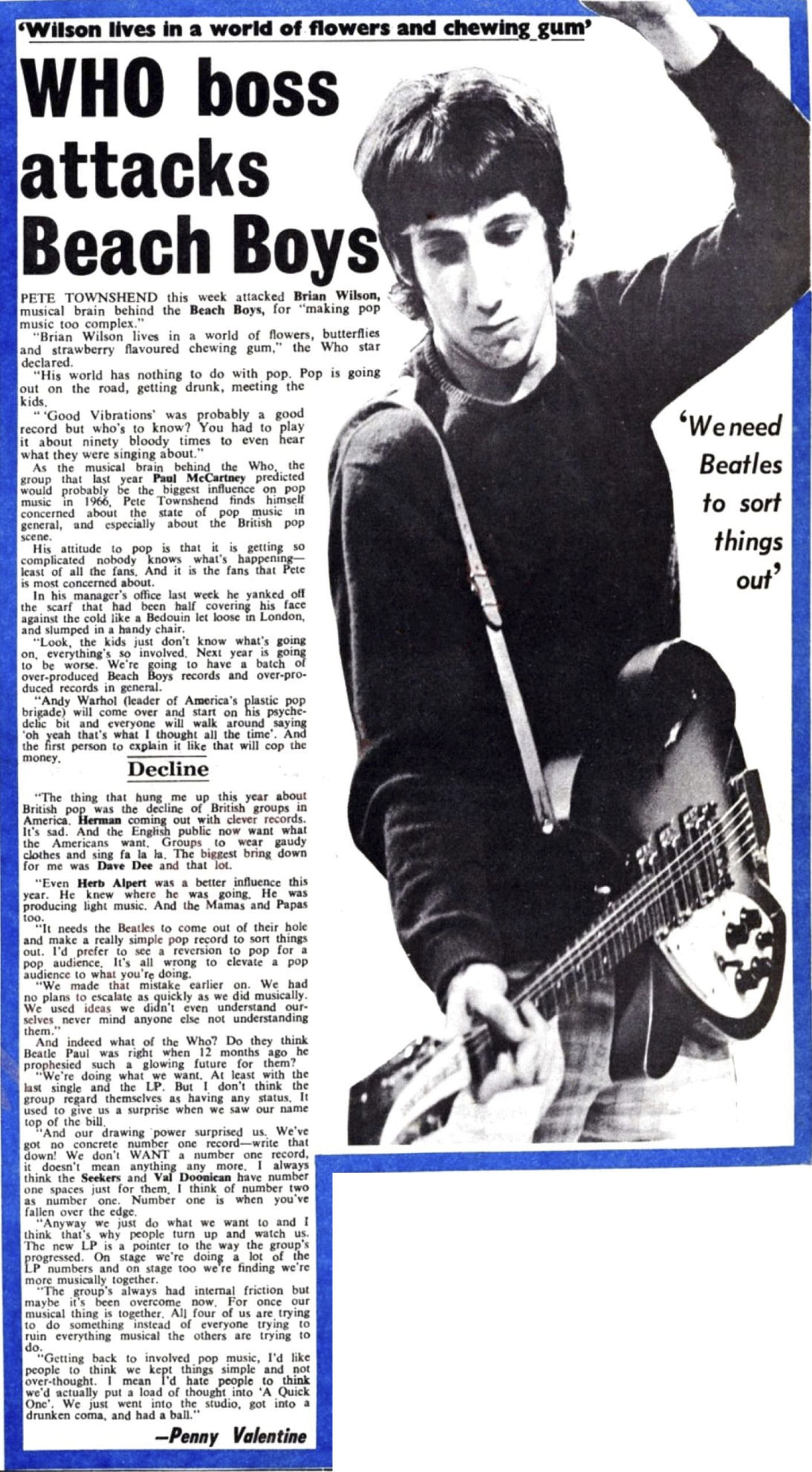 Disc and Music Echo features an article titled “WHO boss attacks Beach Boys”