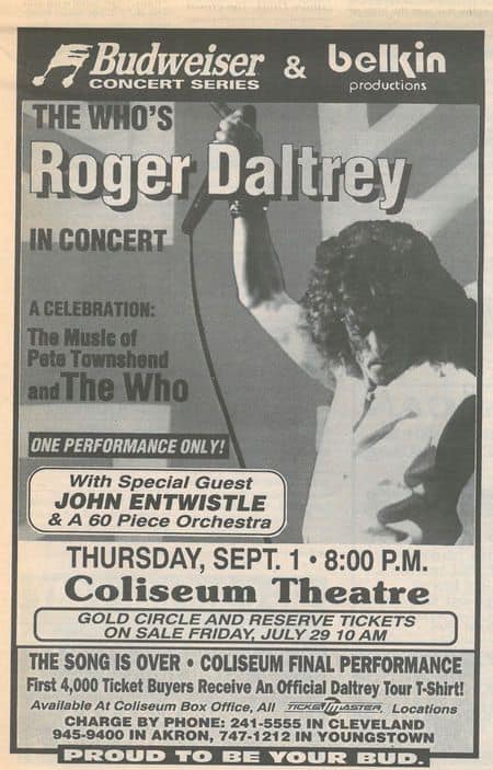 Roger and John continue with the orchestral Daltrey Sings Townshend tour performing in Cleveland at the Richfield Coliseum