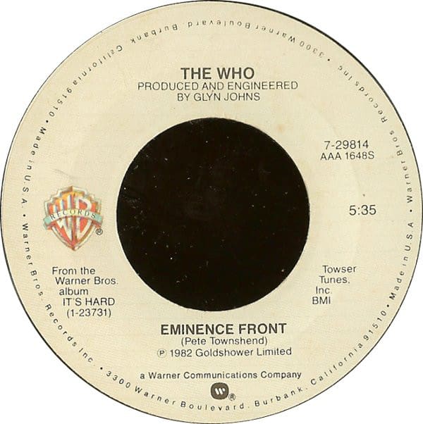 “Eminence Front” backed with “One At A Time” hits the U.S. charts.