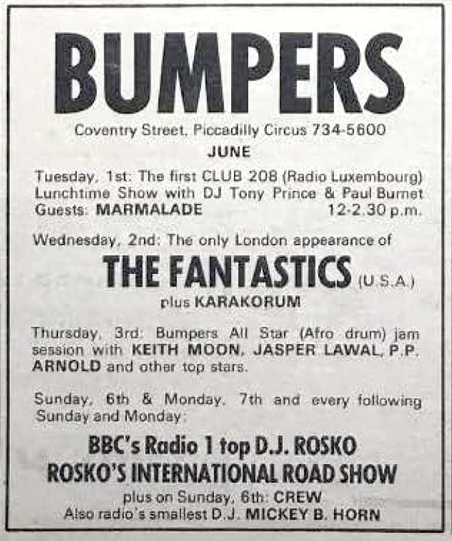 Keith Moon is advertised to perform in the Bumpers All Star (Afro Drum) jam