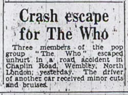 John and driver Richard Cole pick up Keith at his house to head to the Birmingham gig. As they pull away, the vehicle is struck causing serious damage but leaving John and Keith uninjured.