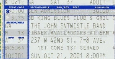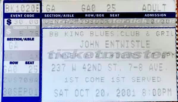 The John Entwistle Band play the second of two nights at B.B. Kings in New York, New York