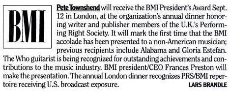 Pete Townshend responds on his website to an angry letter by a fan denouncing him for allowing the song “Bargain” to be used selling Nissan SUVs