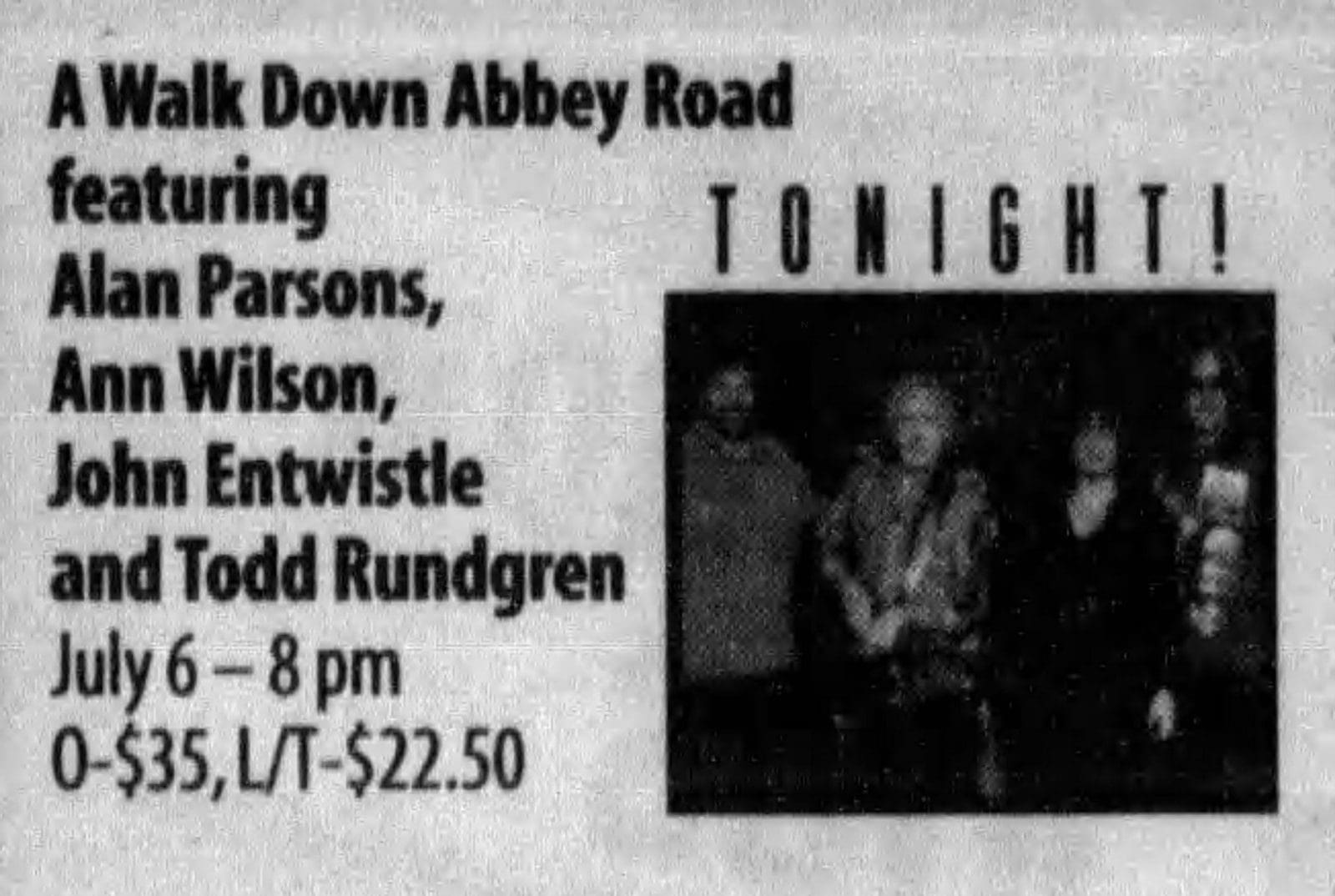 “A Walk Down Abbey Road: A Tribute To The Beatles” featuring John on bass plays the Fraze Pavillion in Kettering, Ohio