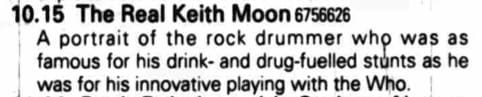 Channel 4 (U.K.) airs “The Real Keith Moon”, an hour-long documentary narrated by John Peel
