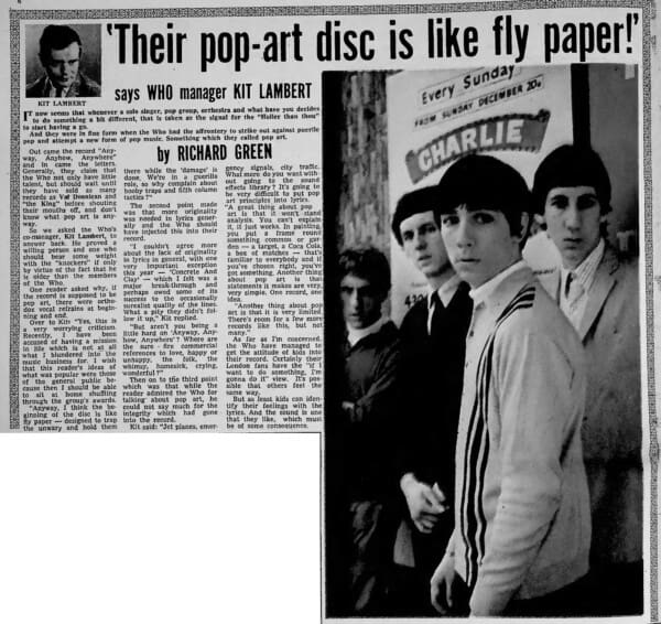 Record Mirror features an article titled "Their pop-art disc is like fly paper!". This issue also contains an add for Anyway, Anyhow, Anywhere. The song moves up two spaces to #24 in their Top 50