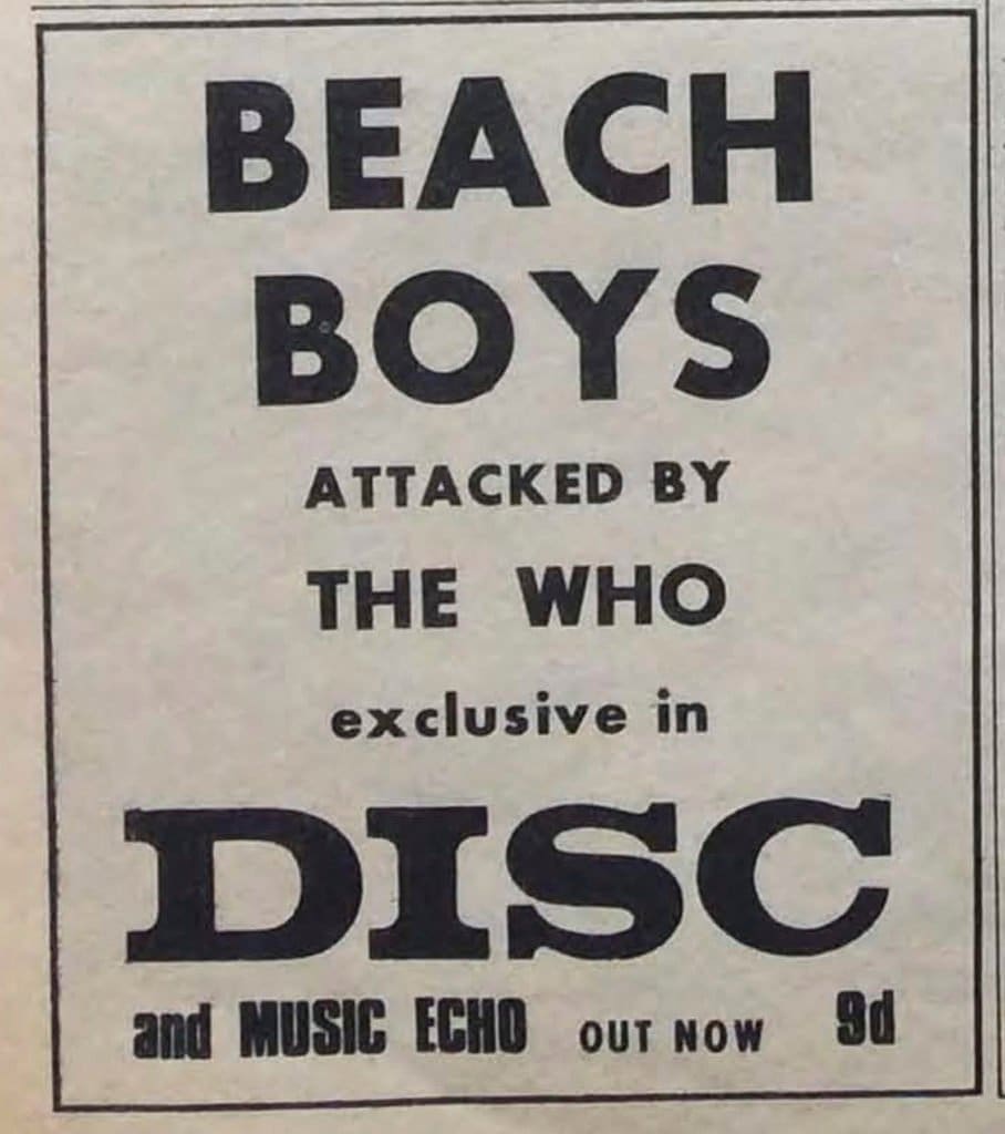 Melody Maker's "Blind Date" features Eric Clapton who reviews "I Need You". The Who are also featured in a mention of their upcoming show at the Saville (January 29th), and ads for their show on December 31st. There is also an ad for Disc and Music Echo which states "Beach Boy's Attacked By The Who"
