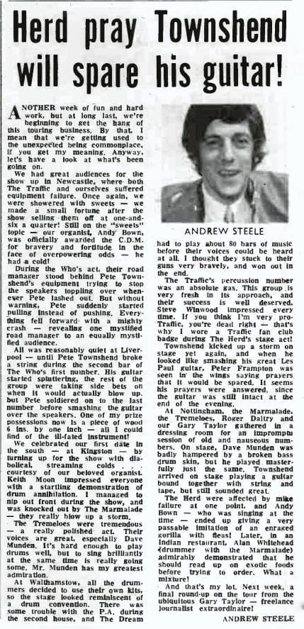 Record Mirror carries an article from Andrew Steele of The Herd about their current tour with The Who