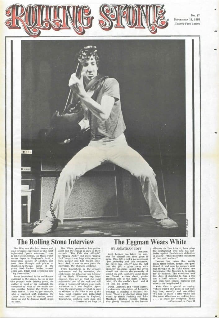 Rolling Stone features an interview with Pete. This often-reprinted interview details the plot of Pete's new rock opera, then called "Deaf, Dumb and Blind Boy," and Pete later has to refer back to the magazine for plot reminders throughout the recording of Tommy. The interview also establishes Pete as rock's greatest expounder on the new music's meaning and idealism.