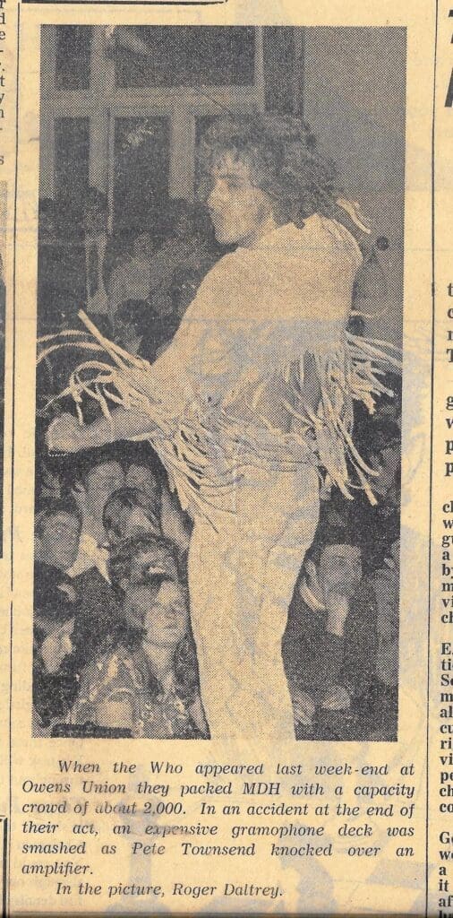 The Who play at the Owens Union at Manchester University in Manchester. This show was originally scheduled for November 23
