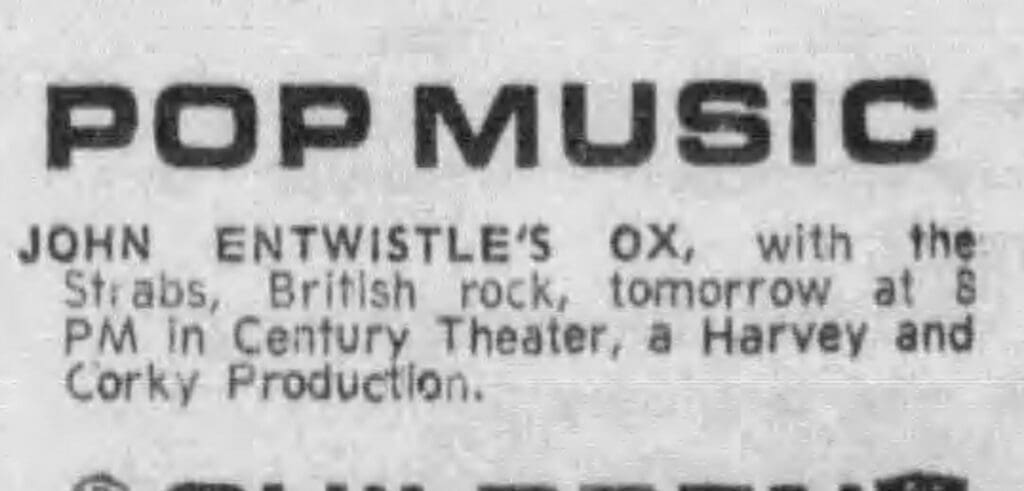 John and his band The Ox is the headlining act at Century II in Buffalo, New York for promoter Harvey Weinstein