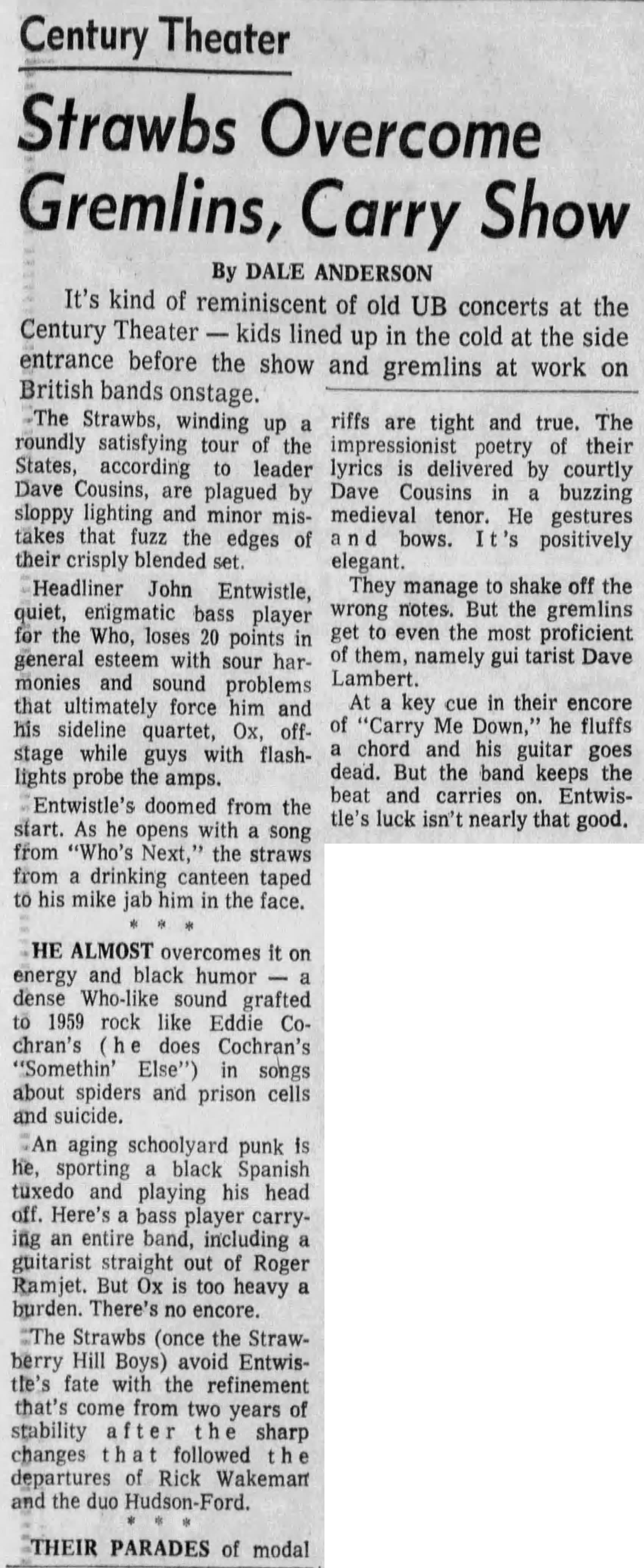 John and his band The Ox is the headlining act at Century Theater in Buffalo, New York