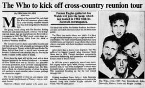 Pete, Roger and John Entwistle appear together at a press conference at Radio City Music Hall in New York City to announce they will again tour as The Who that summer. Pete tells the press that he still experiences hearing problems and gets a laugh when he says, "we will play very, very quietly."