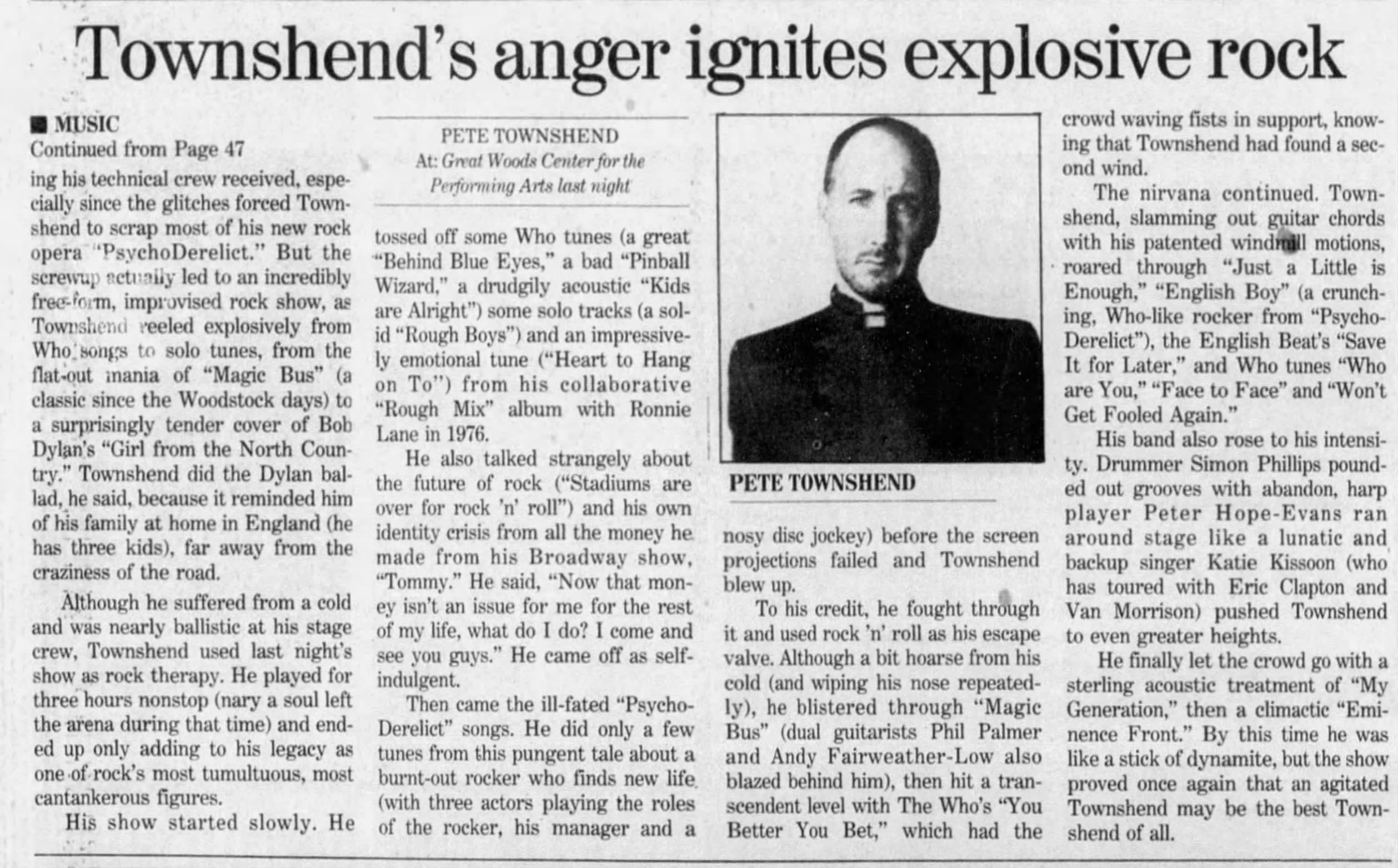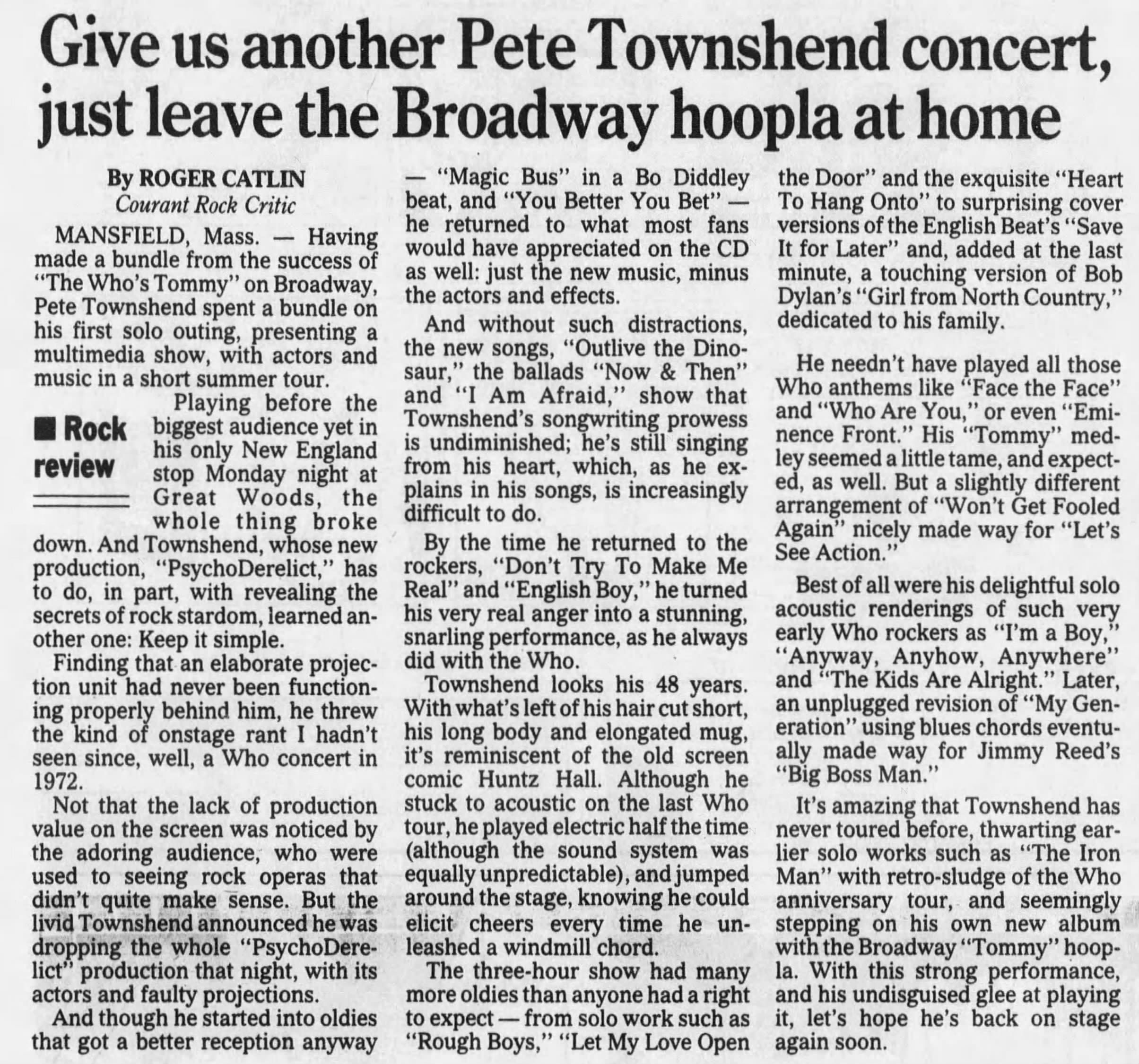 Pete performs at the Great Woods Performing Arts Center in Mansfield, Massachusetts