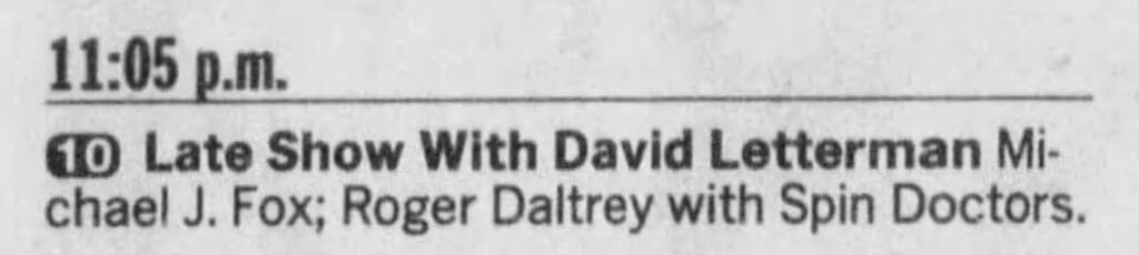 Roger and the Spin Doctors perform "Substitute" on The Late Show with David Letterman. According to the New Yorker this was the most-watched episode of “Late Show with David Letterman” until the final episode in 2015.
