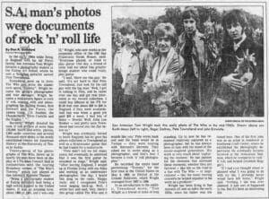 An exhibit of photos taken by Pete Townshend's old art school friend Tom Wright is held at The Center for American History at The University of Texas in Austin. Wright was The Who's official photographer from mid-1967 through 1968. The exhibit continues through April 29th