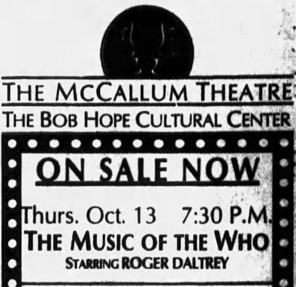 Roger and John perform “Daltrey Sings Townshend” at The McCallum Theatre in Palm Springs, California
