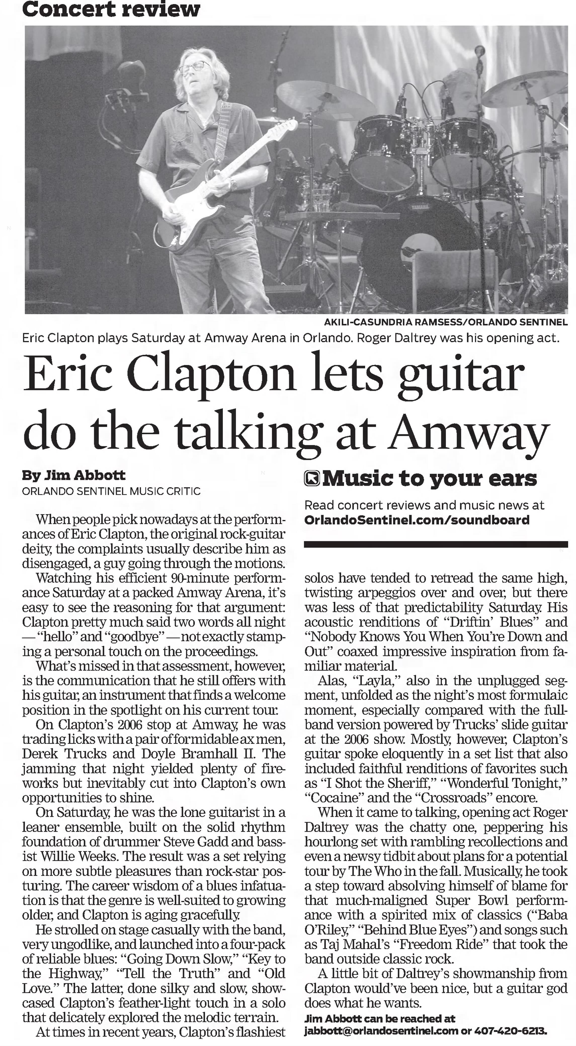 Roger opens for Eric Clapton at the Amway Arena in Orlando