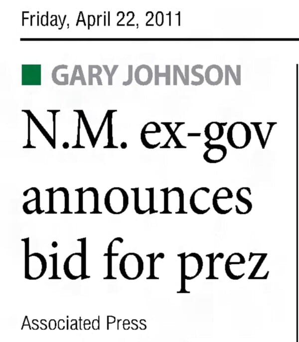 Former New Mexico Governor Gary Johnson announces his run for the U.S. Presidency. "I look at the rest of the field running for President, and that song by The Who comes to mind. Meet the new boss. Same as the old boss."
