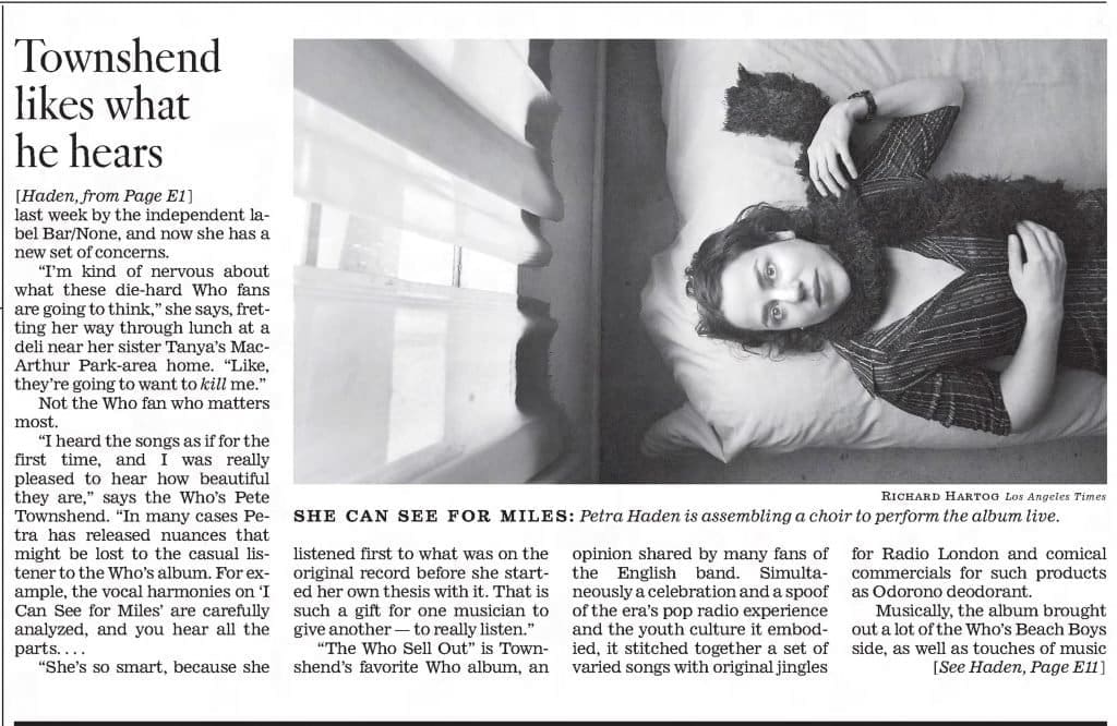 S HE CAN SE E F OR M ILE S: Petra Haden is assembling a choir to perform the album live.