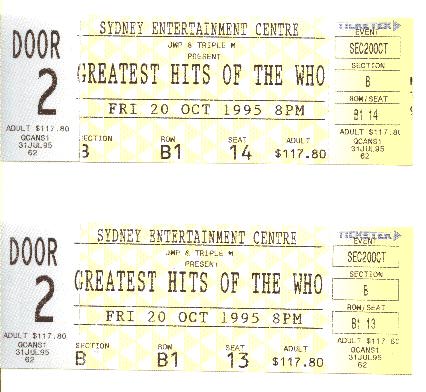 It was finally gonna happen! Roger and John were coming to Australia with what was being billed as the "Greatest Hits of The Who" tour. Unfortunately many in the media were referring to it as a tour by The Who which would not sit comfortably with most Who fans given the absence of Pete but hey, if it sold more tickets...