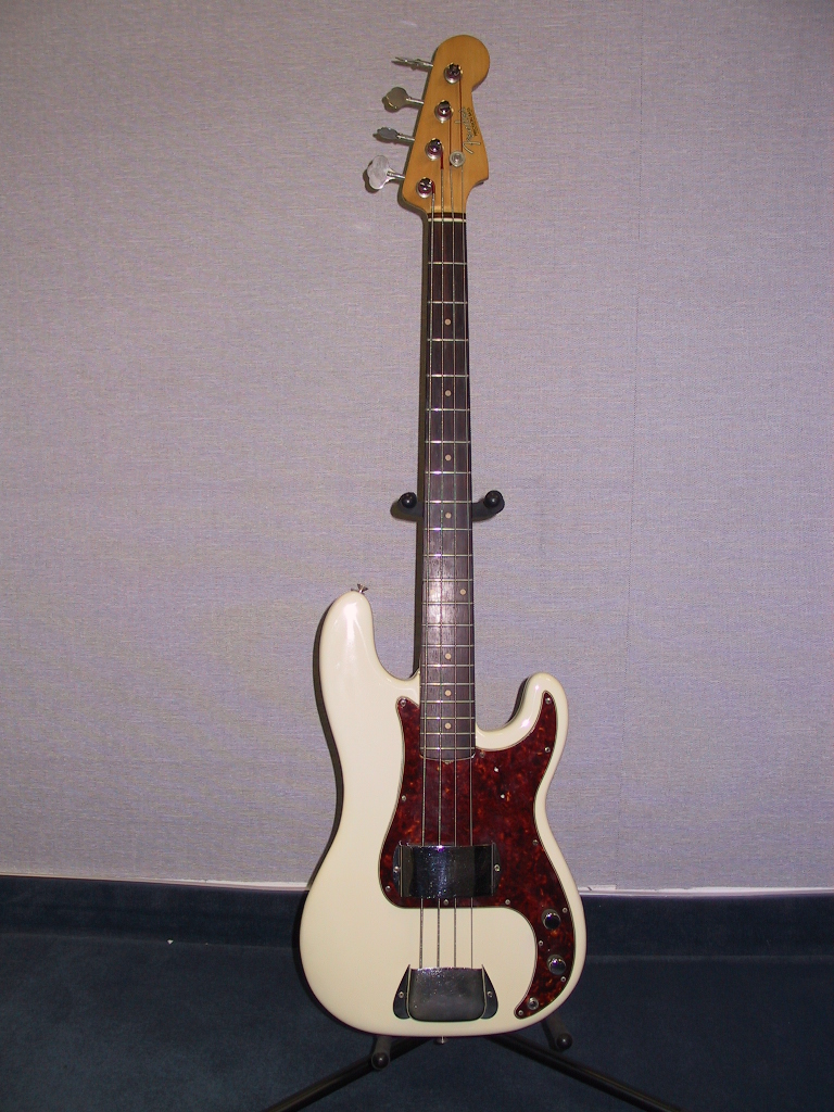 1962 Fender Precision BassBass Culture: “A string of Precisions followed [the Mosrite and Fender VI] and eventually the Precisions became my main stage basses for the next six years.” - Originally sunburst in color, John had it refinished white sometime around February 1966. This bass is distinctive in that it has the Rosewood fretboard and the tortoise shell pick guard.