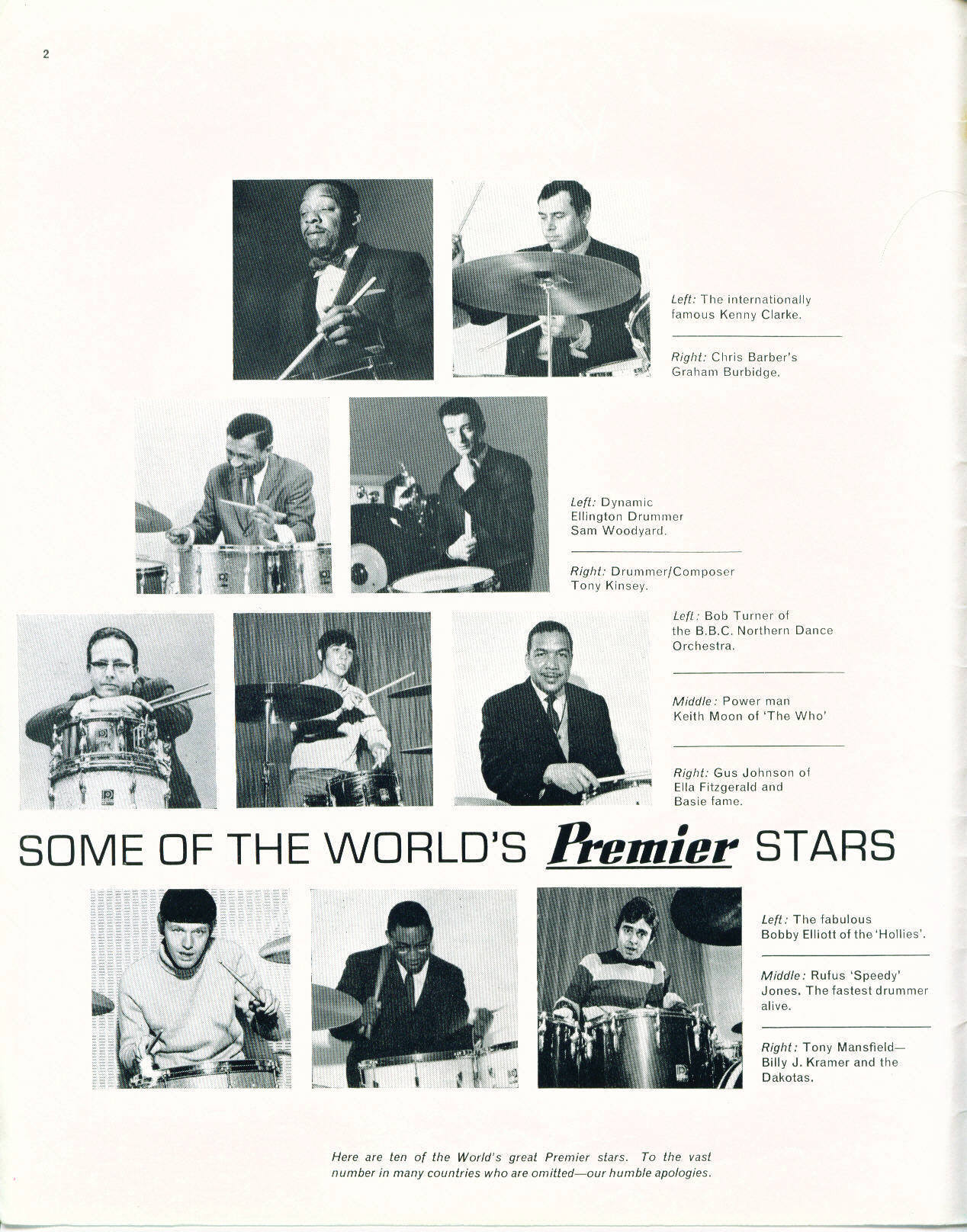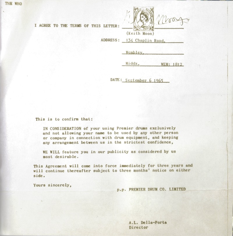 A likely incomplete listing of promotional endorsements for Premier drums by Keith Moon. Keith signed an exclusive endorsement agreement with Premier on 6 September, 1965.